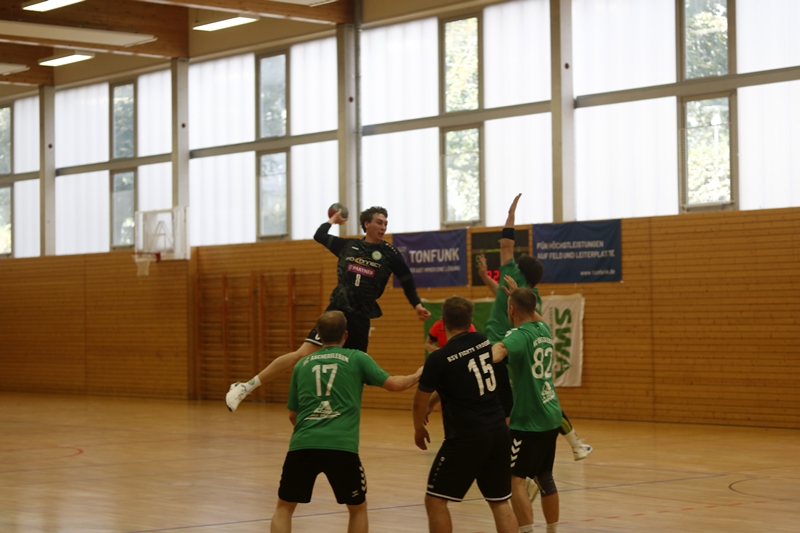 Die Partie wurde pünktlich um 16:00, mit dem Anwurf der Fichte angepfiffen. Daniel John konnte nach 27 Sekunden das erste Tor für die Fichte erzielen. Leider fand der Ball beim darauffolgenden Angriff der Ascherslebener auch das Tor. Fichte konnte im Anschluss durch eine starke Abwehrleistung und gute Paraden des Torhüters F. Frind den Kasten sauber halten und durch Tore von J. Schatz, D. John und H. Laas mit 1:4 davonziehen. Die Heimmannschaft erholte sich aber schnell und konterte mit 2 Toren zum 3:4. Durch ein weiteres Tor von H. Laas konnte die Fichte kurz aufatmen, bevor die mitgereisten Fans nur noch fassungslos miterleben mussten, wie der HC in den nächsten knapp 5 Minuten mit 9:5 davonzog. Durch zu viele individuelle Fehler und ungenaue Abschlüsse der Fichte konnten die Ascherslebener ihr schnelles Konterspiel aufziehen. Trainer F. Hammerschmidt nahm eine Auszeit, um den Spielern einen Moment zum Durchatmen und Sammeln zu geben. Das vorhandene Potential, Tore aus der zweiten Reihe zu erzielen, musste besser umgesetzt werden. Dies klappte zwischenzeitlich auch gut, allerding machte man oft den Fehler, zu nah an der Abwehr zu agieren und so leichte Ballverluste zu provozieren. Bis zur Halbzeit gelang es nicht mehr den Rückstand zu verkürzen und so ging man mit 13:8 in die Pause.