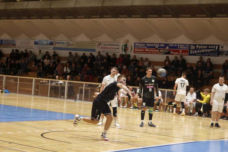 Das Spiel begann pünktlich um 15 Uhr mit dem Anwurf durch die „Fichte“. Gleich beim ersten Angriff war die sehr offensive Deckungsvariante der Gastgeber zu erkennen. Die sich dadurch ergebenden Lücken konnten in der Anfangsphase immer wieder für Tore genutzt werden. Allerdings hielt der HBC ständig dagegen und glich immer wieder aus. So blieb es bis zur 15. Spielminute. Hier gelang es den Gastgeber erstmalig mit 2 Treffer in Führung zu gehen. Die „Fichte“-Männer ließen sich davon jedoch nicht aus ihrem Spielkonzept bringen und konnten den Vorsprung bis zur Pause in eine eigene Führung drehen. So ging es nach kampfbetonten ersten 30 Spielminuten mit einem Stand von 14:15 in die Kabinen.