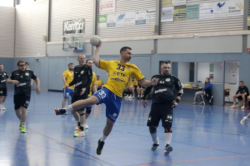 Zu Beginn der zweiten Hälfte versuchten die Gäste wiederum durch eine sehr offensive und harte Abwehr den Erdeborner Spielfluss zu unterbrechen. Dem Spiel der Fichte war nun die Genauigkeit und der Biss ein wenig abhandengekommen. Es häuften sich Ballverluste durch technische Fehler und ungenaue Abschlüsse. So kamen die Männer aus Thale augenscheinlich wieder besser ins Spiel. Doch in dieser Phase war es der glänzend auferlegte Frind im Fichte-Tor, der den einen oder anderen freien Wurf abwehrte. Das Spiel wurde hitziger, doch mit Michel Hammerschmidt hatte Erdeborn einen Ruhepol, der im Angriff mit Auge seine Mitspieler einzusetzen wusste. Ebenso war es der erfahrene Christian John, der wichtige Tore in dieser heißen Phase Mitte der zweiten Hälfte erzielte. 10 Minuten vor dem Ende waren die Hausherren dann klar auf Siegkurs und konnten bis zum Schlusspfiff durch schnelle Tore das Ergebnis noch einmal hochschrauben.