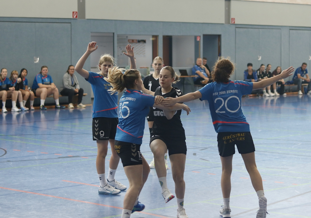 Die Gäste aus Zerbst fanden kaum ins Spiel. Zwar gelang ihnen durch Schwabe, Schröter und Brandt jeweils ein Tor, doch gegen die konsequente Abwehrarbeit und das schnelle Umschaltspiel der Gastgeberinnen hatten sie keine Chance. Zudem handelten sich die Zerbsterinnen drei Zwei-Minuten-Strafen und eine Disqualifikation ein, was den Spielfluss zusätzlich hemmte.