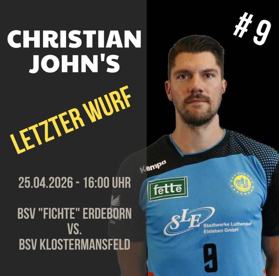 Morgen steht bei der Männermannschaft nicht nur das Derby gegen den BSV Klostermansfeld an, sondern auch das letzte Heimspiel von #9 - Christian John!