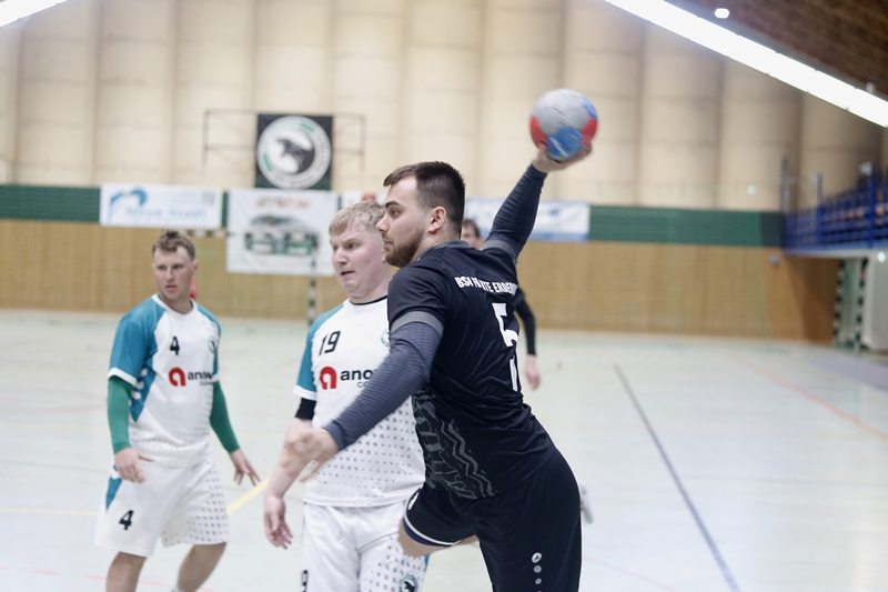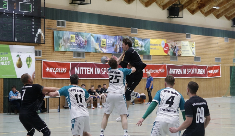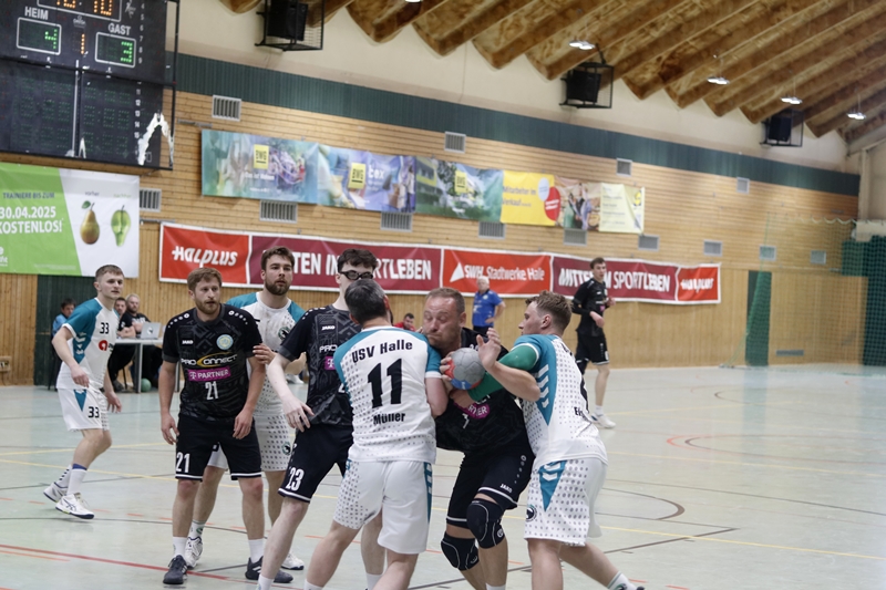Nach dem Seitenwechsel übernahm Erdeborn zunehmend das Kommando. Ein stark parierenden Sven Schmeißel und ein Philipp Schatz der das Spiel klug führte und selbst wichtige Treffer erzielte – 11 Tore insgesamt, waren wichtige Schlüsselfiguren in diesem Spiel. Auch Jannik Schatz zeigte sich mit sechs Treffern enorm effektiv. Hinzu kamen Tore von Paul Nikiforow (4) und Michel Hammerschmidt (2). Durch konsequente Abwehrarbeit und variable Angriffe konnte sich Erdeborn ab der 40. Minute Stück für Stück endlich absetzen. In der 44. Minute stand es 22:17 – die höchste Führung des Spiels. Doch wie so oft in dieser Saison schlichen sich kleine Fehler und Unkonzentriertheiten ein. Fehlpässe, überhastete Abschlüsse und eine kurzzeitige Unordnung im Rückzugsverhalten brachten Halle wieder ins Spiel.
