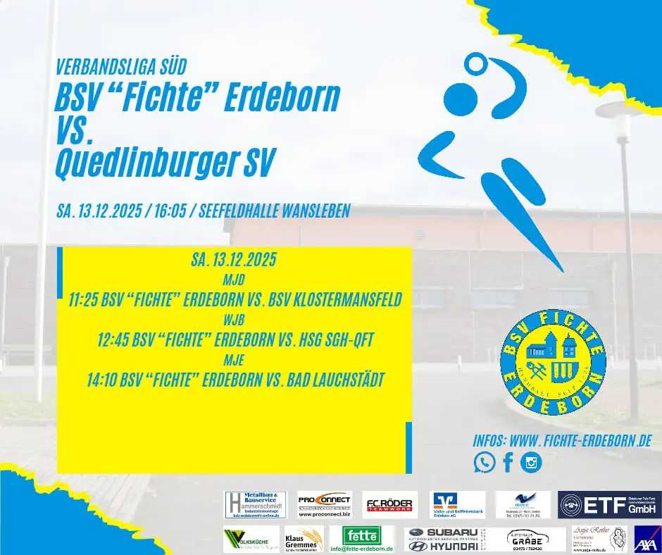 Den Heimspieltag komplettieren unsere Jugendmannschaften. Auch sie wollen das Spieljahr 2025 erfolgreich abschließen. Die WJB empfängt das Team der HSG Sangerhausen-Querfurt, während die MJD die Mannschaft des BSV Klostermansfeld herausfordert. Den Auftakt machen unsere jüngsten Talente der MJE, welche sich mit dem VfB Bad Lauchstädt messen werden.